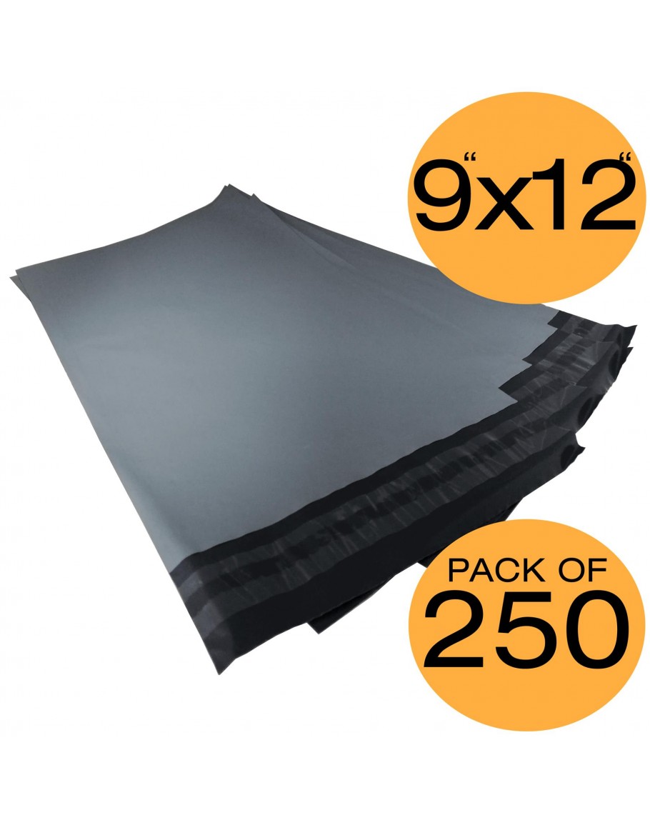 250 Grey Mailing Bags 9x12 50% Recycled Plastic Material Self Seal Strong Postal Poly