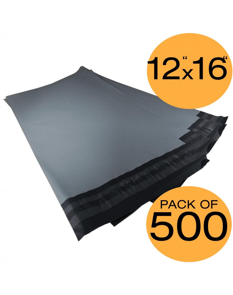 500 Grey Mailing Bags 12x16 50% Recycled Plastic Material Self Seal Strong Postal Poly