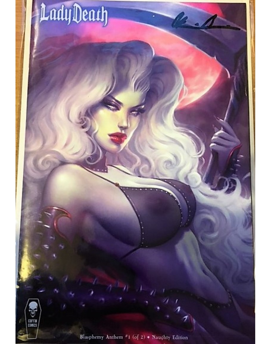 Coffin comics Lady Death blasphemy anthem #1 Kickstarter Sun Khamunaki Naughty edition Signed with Certificate by Brian Pulido.