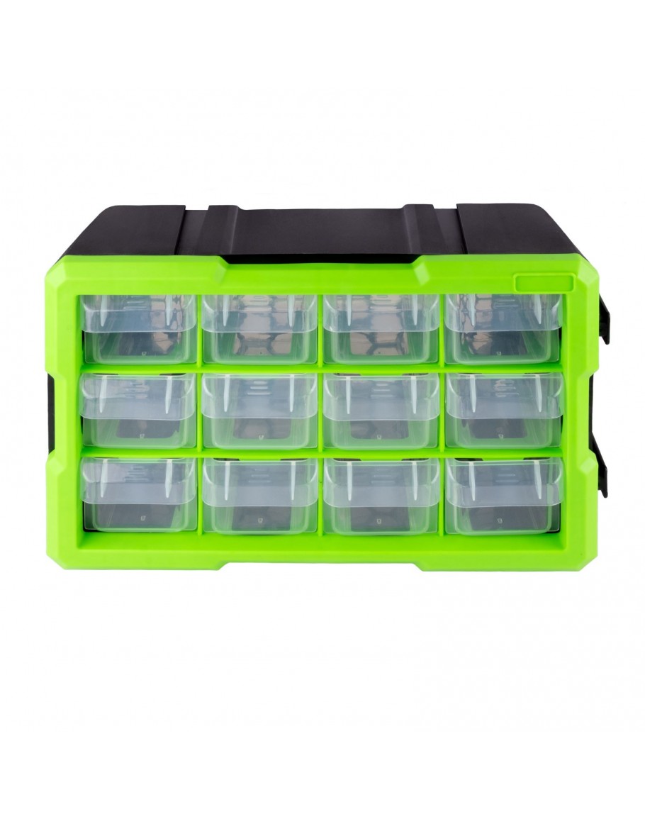 Get organised and clear up some space with this practical 12 drawer set. The interlocking system allows multiple storage boxes to be fastened together securely. Mix and match the different designs to suit your needs.