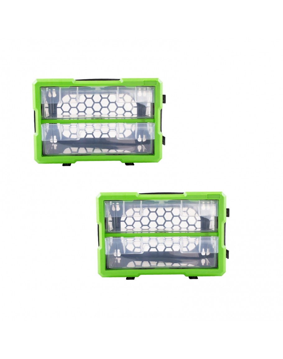 Get organised and clear up some space with this practical 2 drawer set. The interlocking system allows multiple storage boxes to be fastened together securely. Mix and match the different designs to suit your needs.