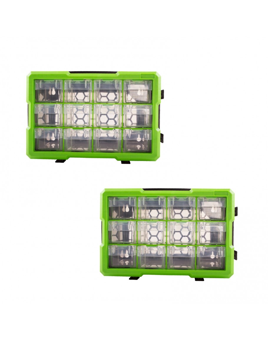 Get organised and clear up some space with this practical 12 drawer set. The interlocking system allows multiple storage boxes to be fastened together securely. Mix and match the different designs to suit your needs.