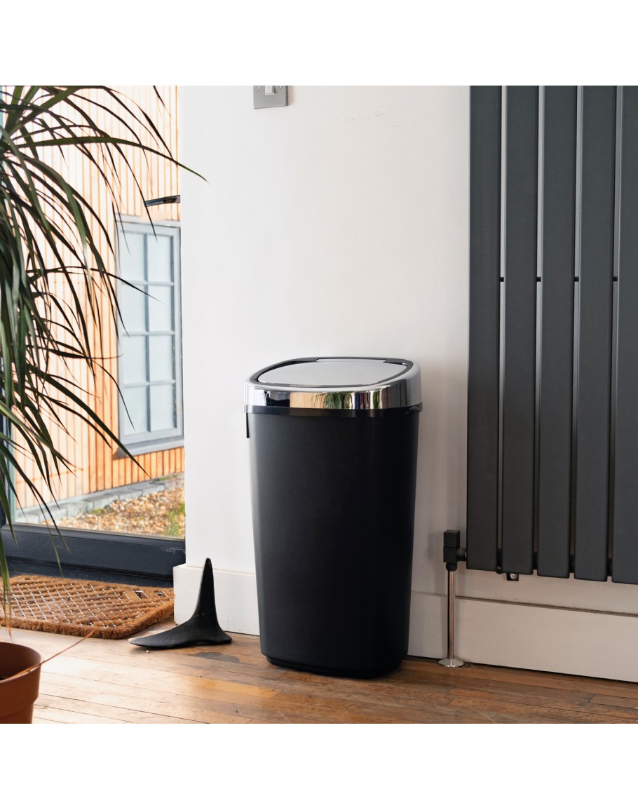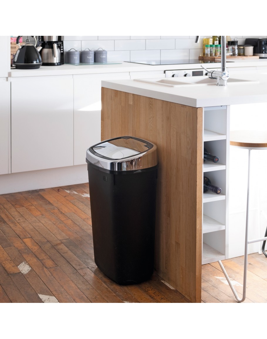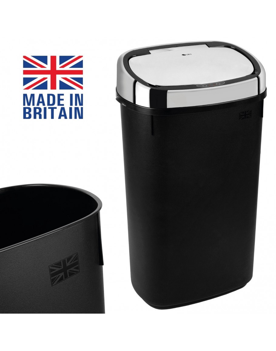 UK MADE! 50L Black Bin with Chrome Sensor Bin Lid