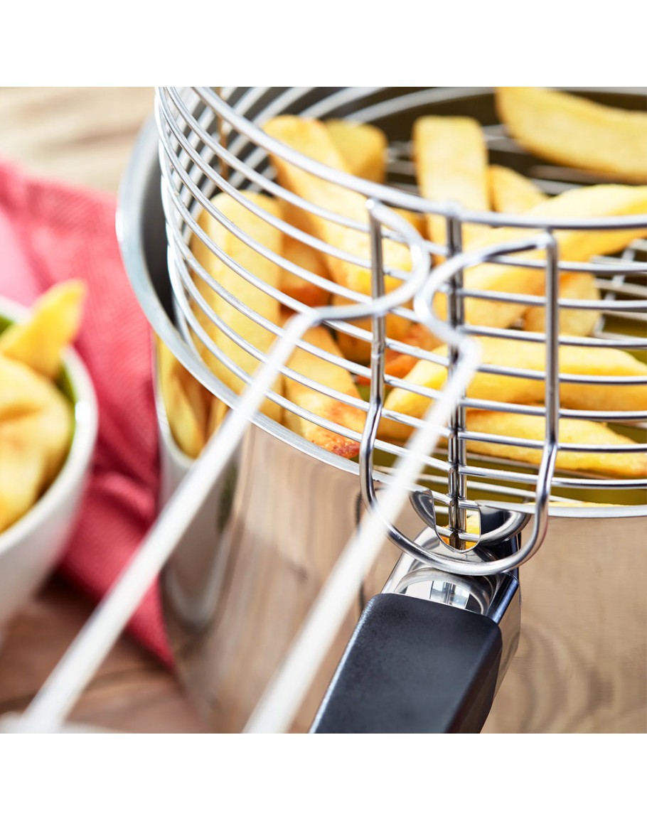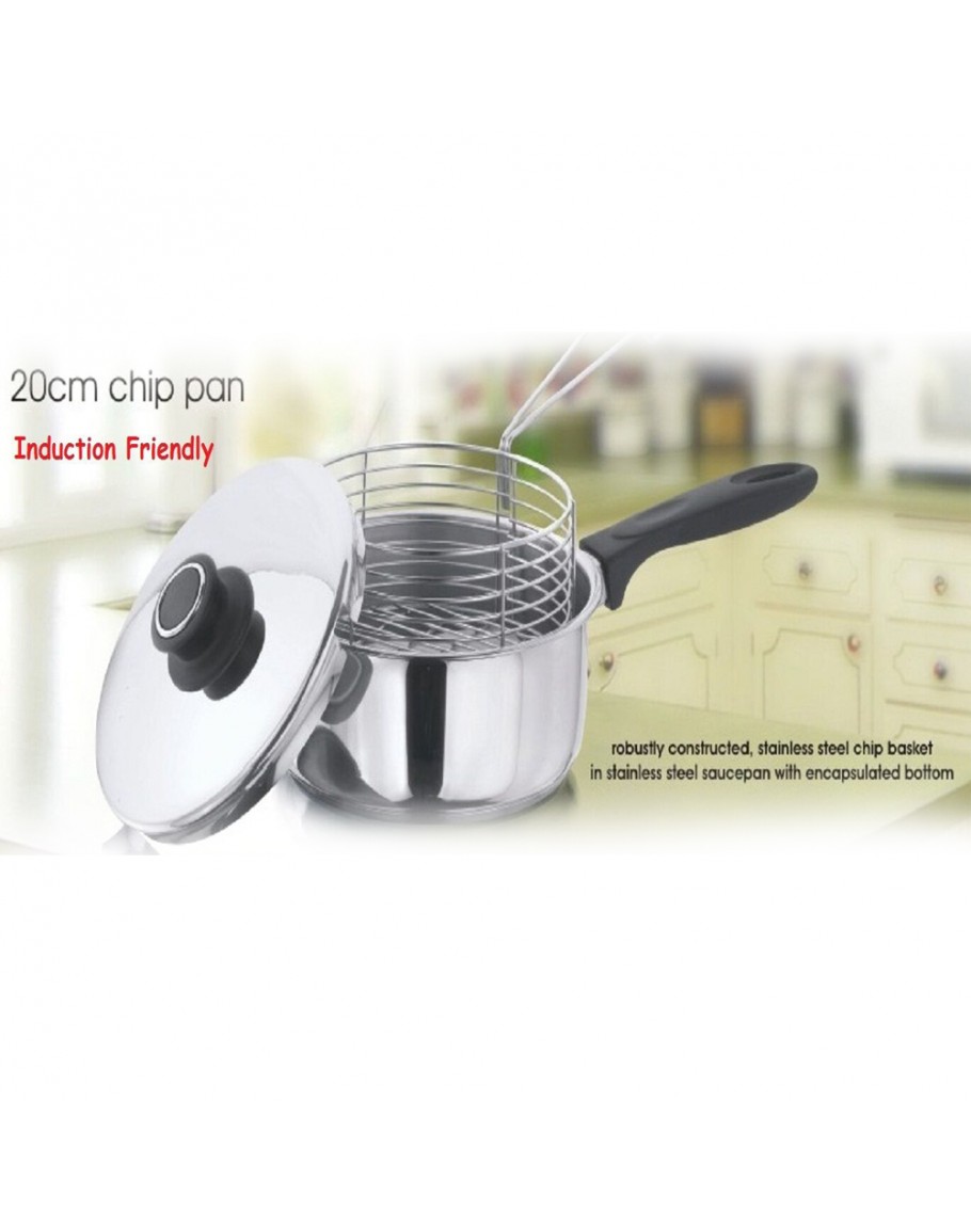 Chips Fryer Diameter 20cm Phenolic handles Suitable for all Hobs including Induction Dishwasher safe Easy to use Wire basket sits neatly in the pan The basket is made of Stainless Steel as well Robustly constructed, stainless steel chip basket